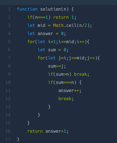 홀수의 경우 약수를 구하면 연속된 숫자의 개수를 구할수있다.