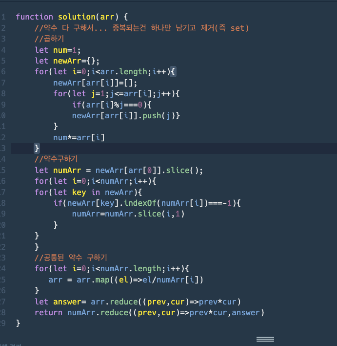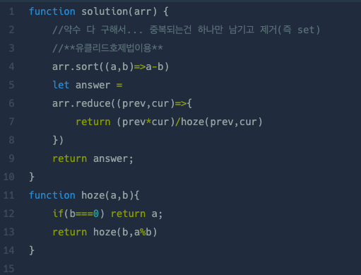[프로그래머스/javascript] N개의 최소공배수(다시풀기 feat.유클리드호제법)