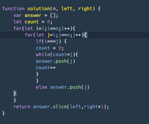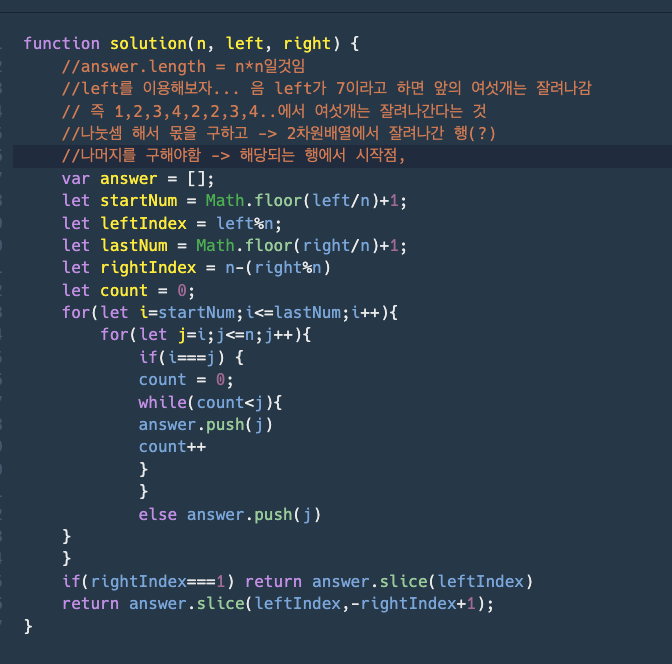 처음엔 이렇게 풀었다. 삼중반복문인데다가 처음부터 끝까지 배열을 만들고 자르는 방식으로 해서 런타임에러가 났다.