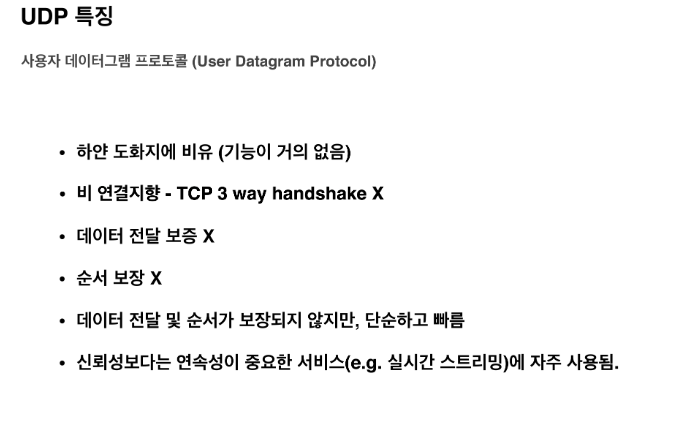 - 비신뢰성: 서버가 데이터를 전달하던 중 장애가 생겨 패킷이 중간에 소실되더라도 클라이언트는 이를 파악할 방법이 없다.