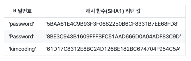 레인보우테이블이란 해시함수를 거치기 이전의 값을 알아낼 수 있도록 기록해놓은 표이다.