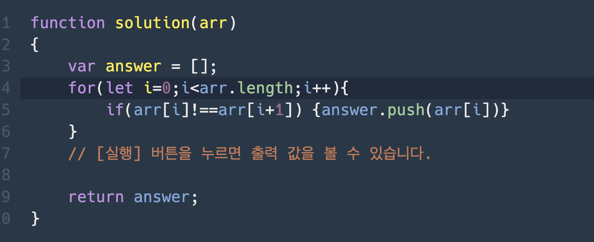 처음엔 arr에서 제거하는 방식으로 갔다가 그렇게 하니 계속 틀리길래 다른분의 힌트를 얻어 push로 풀었다. 다시 풀어볼것