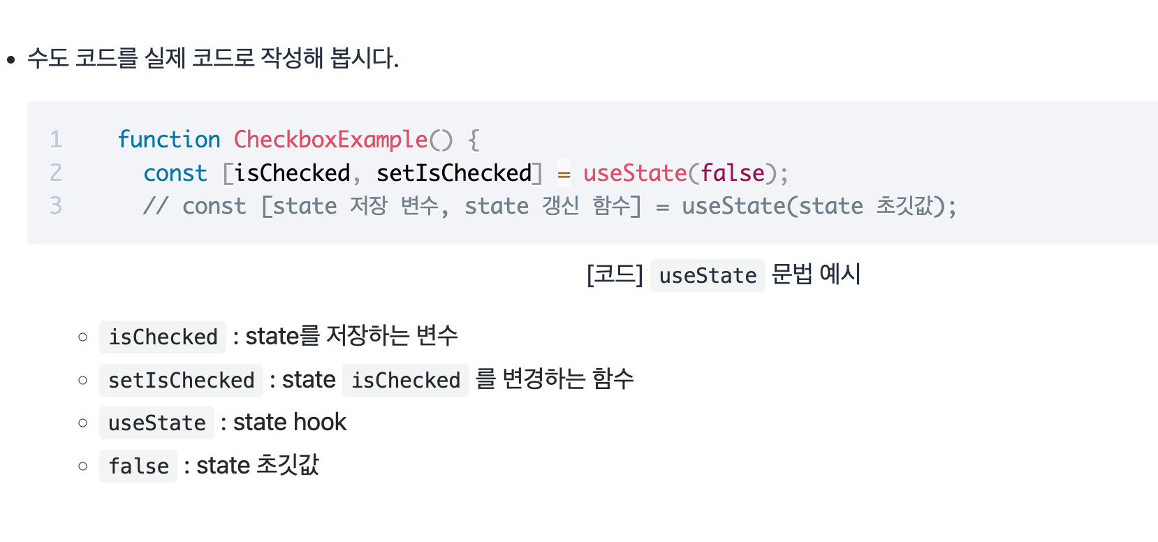 라고 하면 sol은 state을 저장하는 변수 pinetree는 state sol을 변경하는 함수, true는 초기값. 변수와 함수이름은 마음대로 설정하면됨.